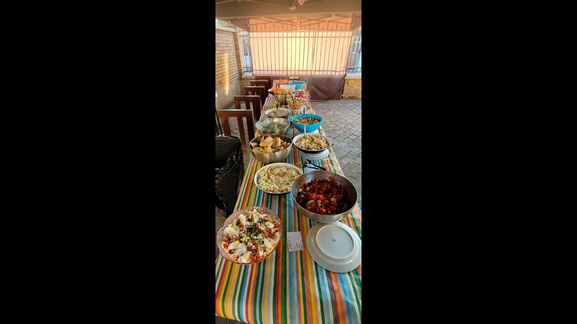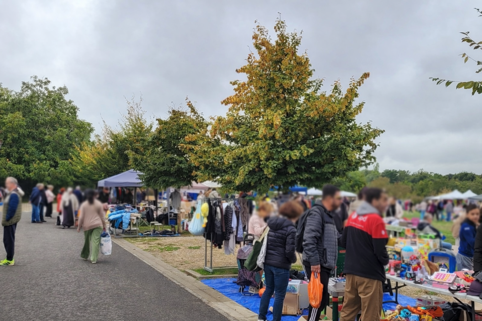 Marché en plein air sous ciel gris